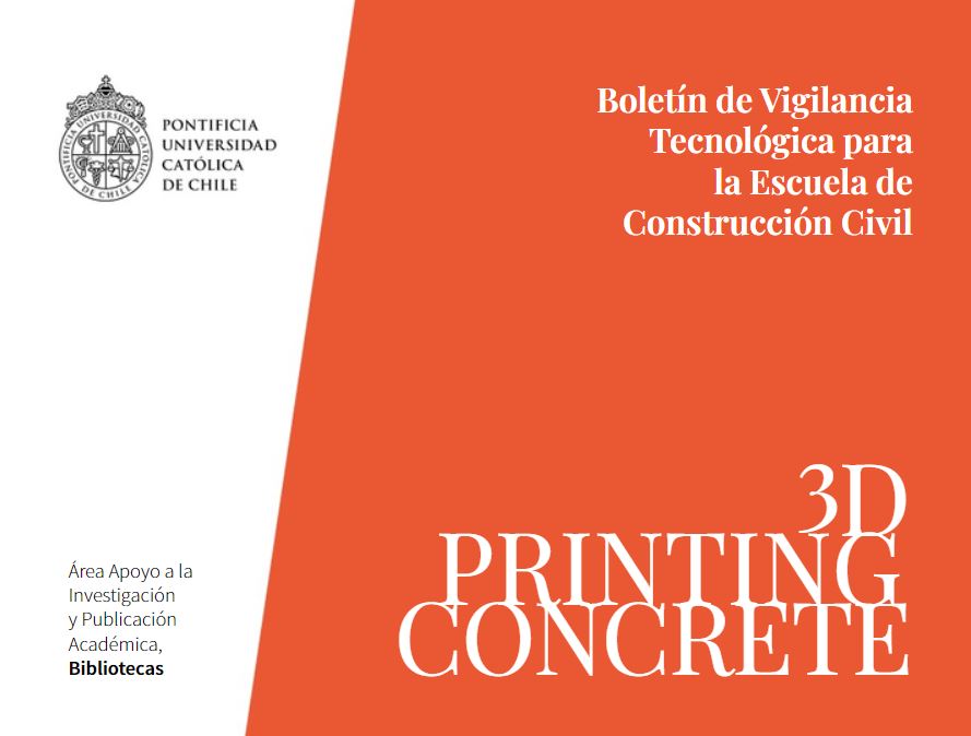 Conoce el primer boletín de Vigilancia Tecnológica desarrollado en plan piloto por Bibliotecas UC junto a la Escuela de Construcción Civil que, a través de su Dirección de Investigación y Desarrollo, definió el tema en diversas fuentes de información: "3D Printing Concrete".