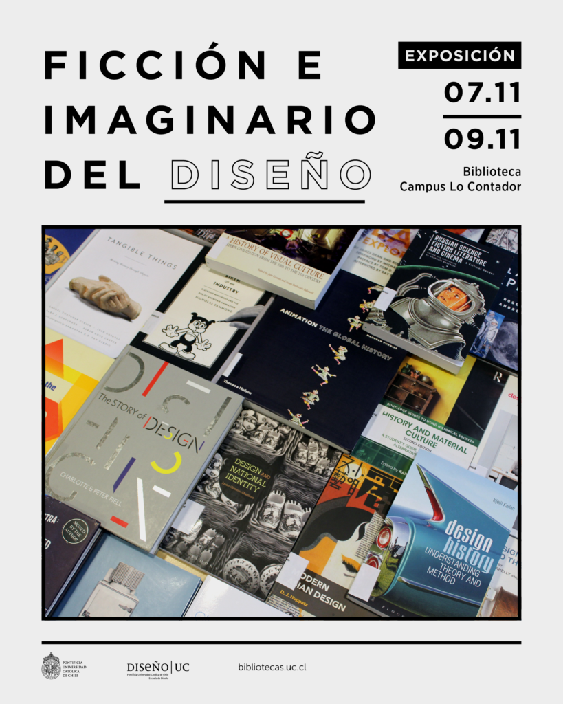 Biblioteca Lo Contador, en conjunto con Hugo Palmarola, académico de la Facultad de Arquitectura, Diseño y Estudios Urbanos, invitan a la comunidad universitaria a visitar la muestra “Ficción e imaginario del Diseño”, que estará expuesta al interior de la biblioteca entre el 7 y 9 de noviembre.
