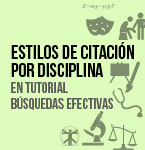 El Turorial Búsquedas Efectivas pone a disposición de la comunidad UC una nueva tabla de Estilos de Citación Recomendados por Disciplina, ubicada en la pestaña “Citar un documento”, bajo el punto N° 4 "Normas internacionales". Busque su disciplina por área del conocimiento.